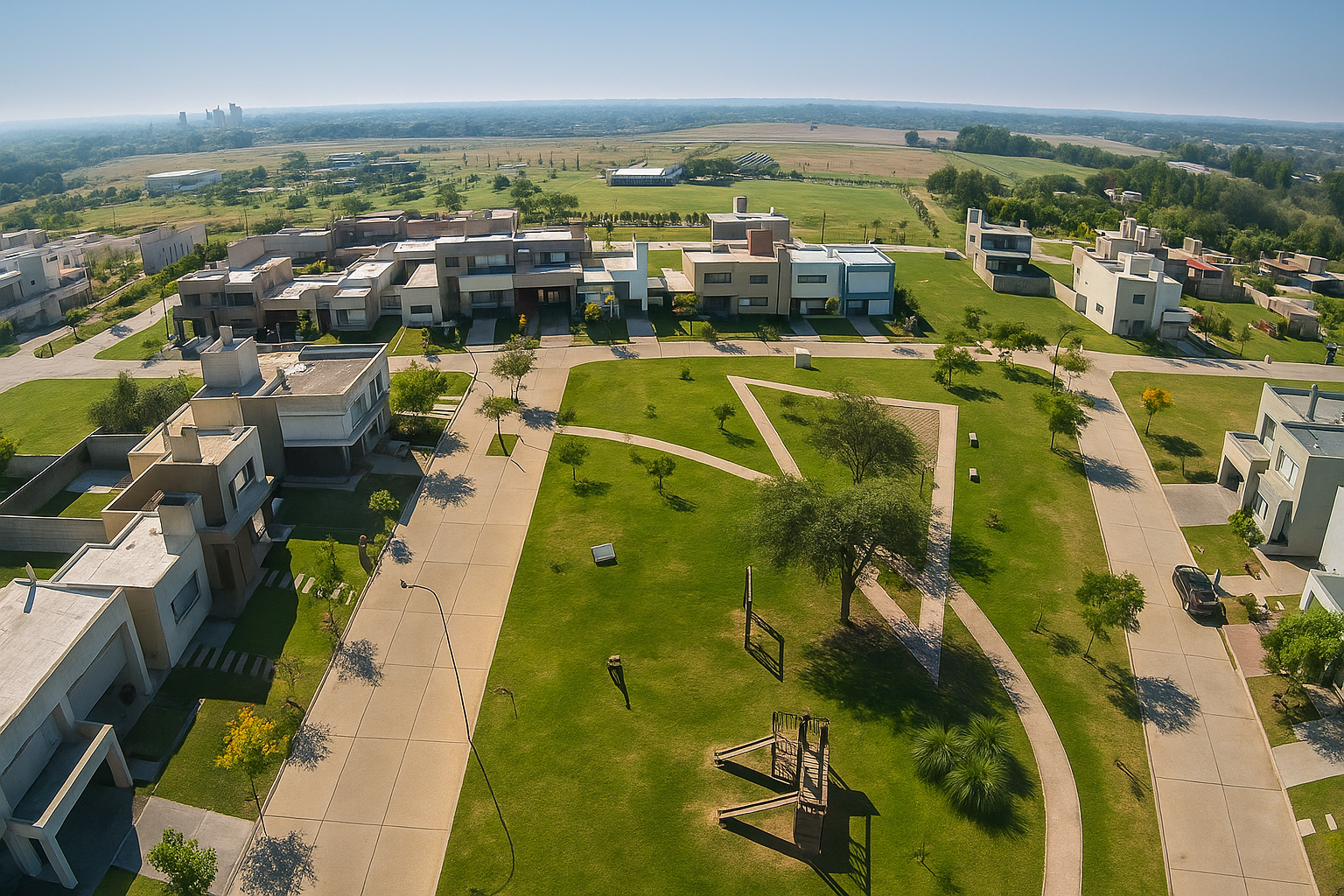 El Parque Bustos, inaugurado en un predio de 10 hectáreas a orillas del Río Suquía, se consolidó como un nuevo espacio verde de referencia en Córdoba. Nuestra empresa participó activamente en la infraestructura urbana, con la apertura de calles adoquinadas, el tendido eléctrico y la incorporación de mobiliario urbano, elementos fundamentales para integrar el parque al entorno y garantizar su funcionalidad.